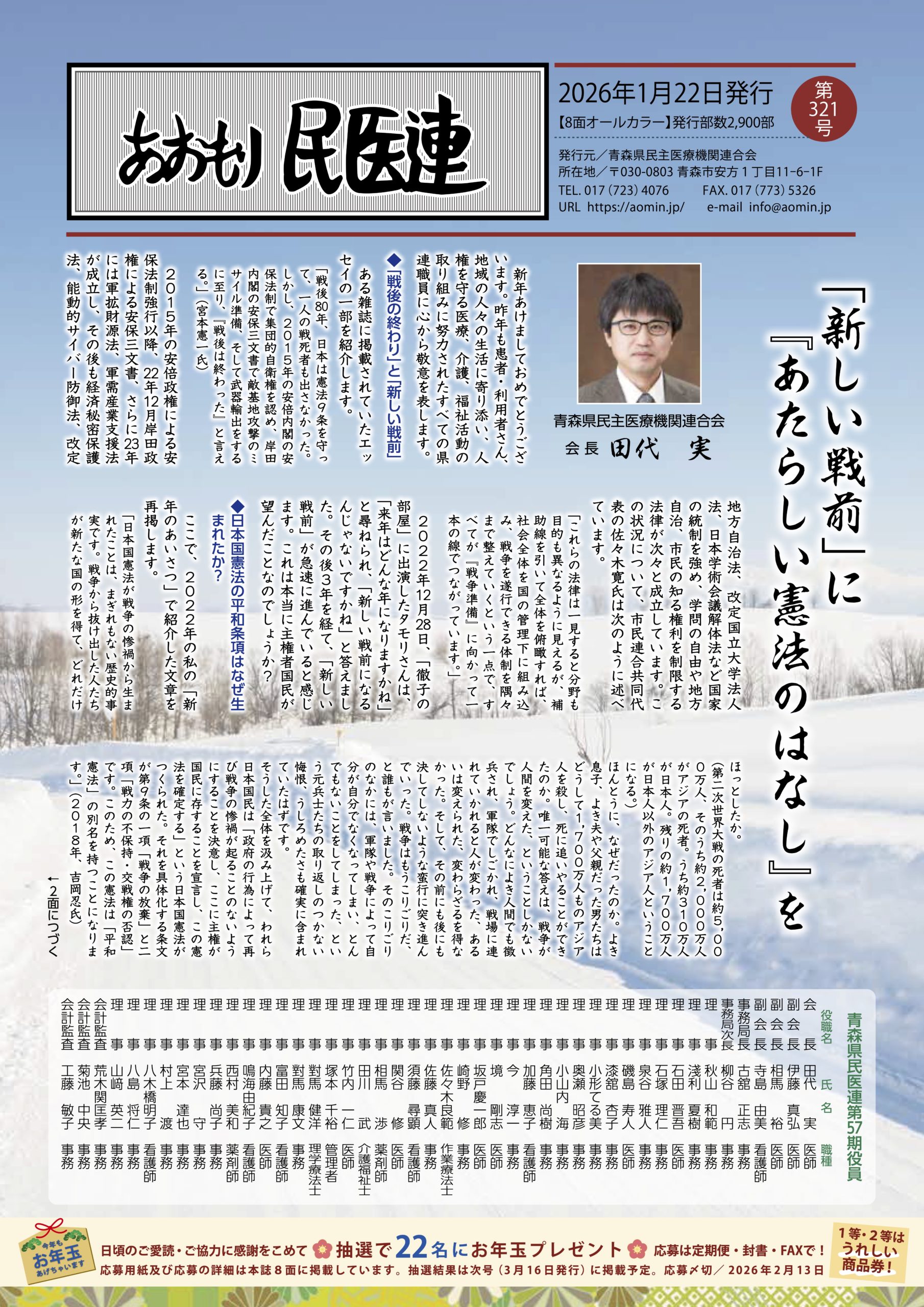 青森民医連 2027年度採用の看護師就職説明会を開催いたします。 日時は、2026年4月11日(土)13:30~15:30です。 青森会場:青森保健生活協同組合本部と弘前会場:健生病院をオンラインで繋いだハイブリット形式 […] -