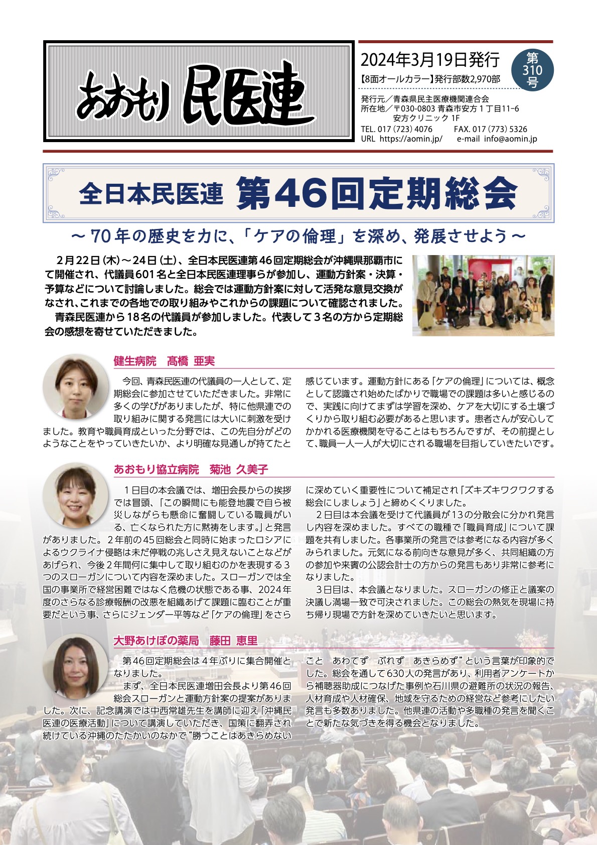 青森民医連 2027年度採用の看護師就職説明会を開催いたします。 日時は、2026年4月11日(土)13:30~15:30です。 青森会場:青森保健生活協同組合本部と弘前会場:健生病院をオンラインで繋いだハイブリット形式 […] -