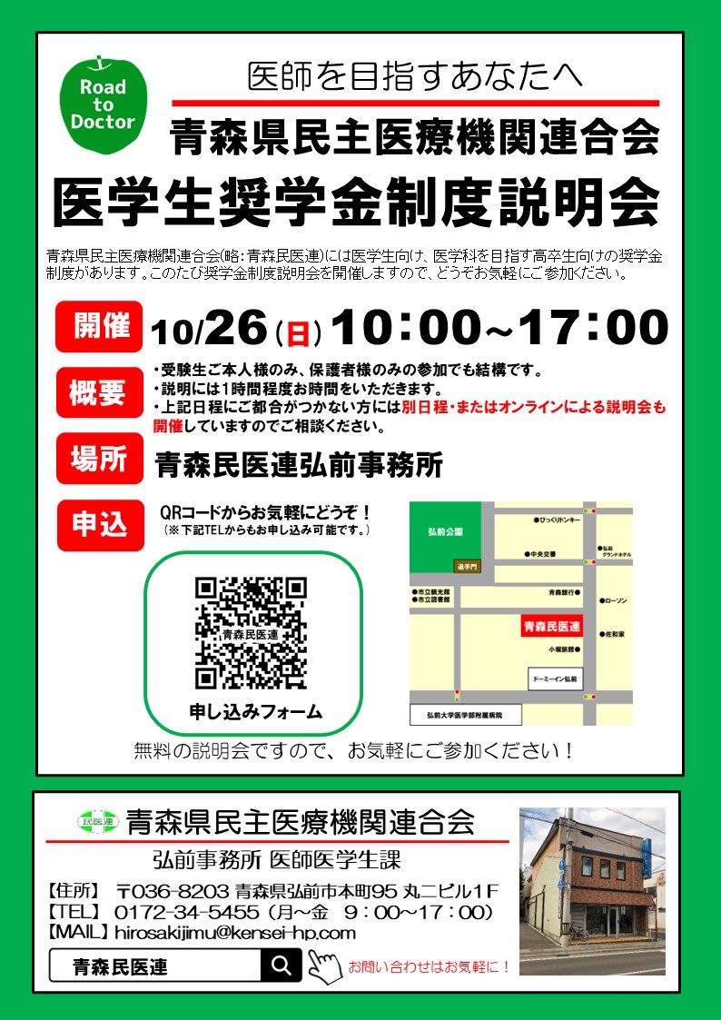【2025年10月26日(日)】青森民医連 医学生奨学金制度説明会