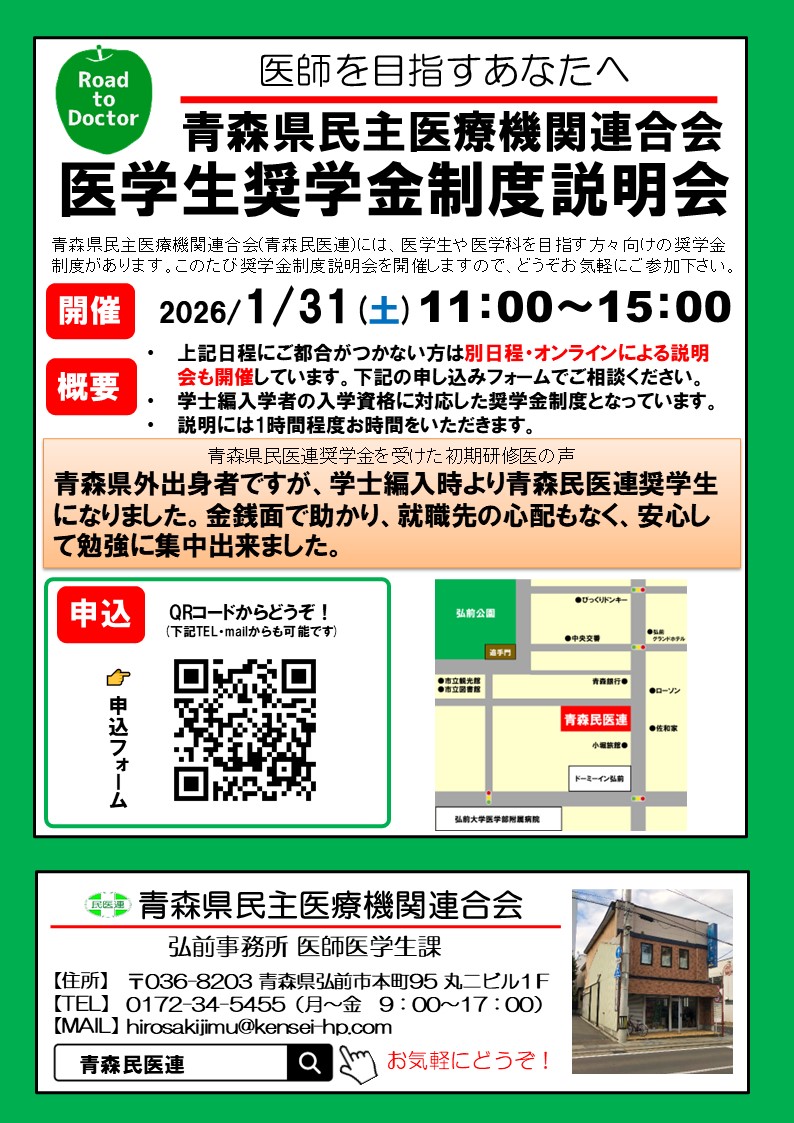 【2026年1月31日(土)】青森民医連 医学生奨学金制度説明会