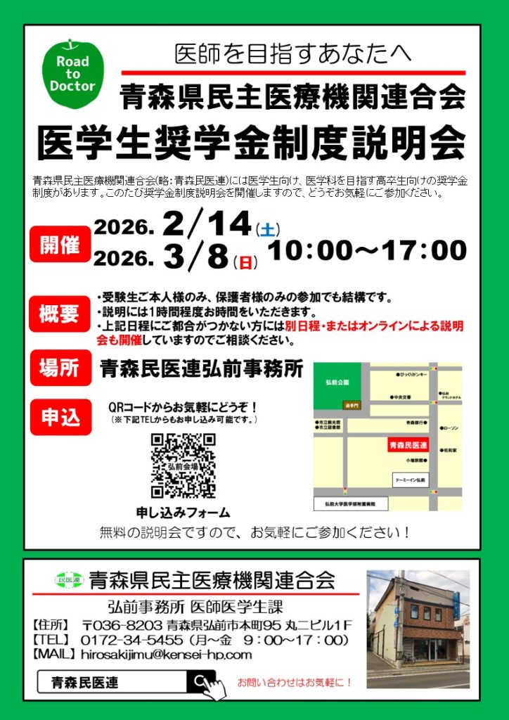 青森民医連では、医学部医学科生向けの奨学金制度を設けています。